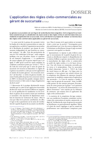 L’application des règles civilo-commerciales au gérant de succursale.