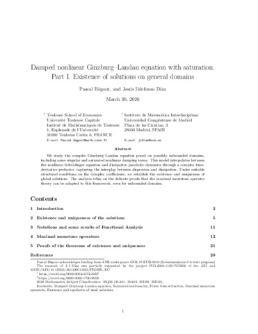 | Uncontrolled Keywords: | Damped Ginzburg–Landau equation,, Saturated nonlinearity,, Finite time extinction,, Maximal monotone operators,, Existence and regularity of weak solutions |