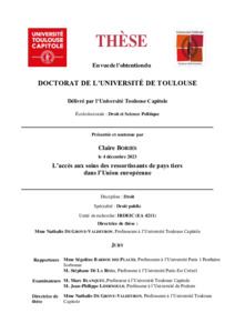Bories, Claire (2023) L'accès aux soins des ressortissants des pays tiers dans l'Union européenne. École doctorale Droit et Science Politique (Toulouse).