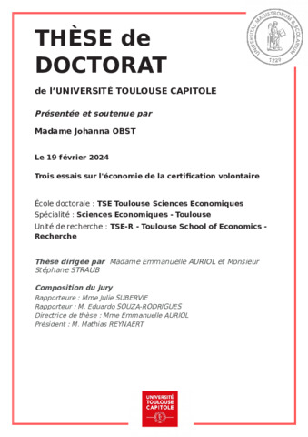 Obst, Johanna (2024) Trois essais sur l'économie de la certification volontaire. .