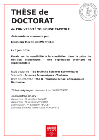 Loewenfeld, Moritz (2024) Essais sur la sensibilité à la corrélation dans la prise de décision économique : une exploration théorique et expérimentale. .
