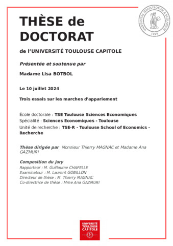 Botbol, Lisa (2024) Trois essais sur les marchés d'appariement. .