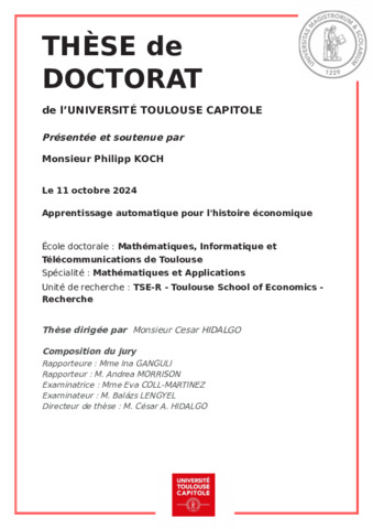 Koch, Philipp (2024) Apprentissage automatique pour l'histoire économique. École doctorale Mathématiques, Informatique et Télécommunications (Toulouse).