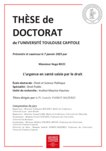 Ricci, Hugo (2025) L'urgence en santé saisie par le droit. École doctorale Droit et Science Politique (Toulouse).