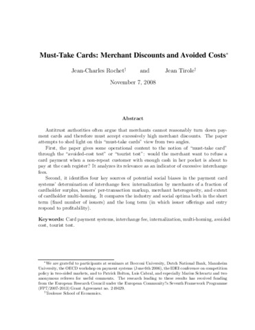 Must-Take Cards: Merchant Discounts and Avoided Costs. (deposited 18 Jan 2012 05:46)